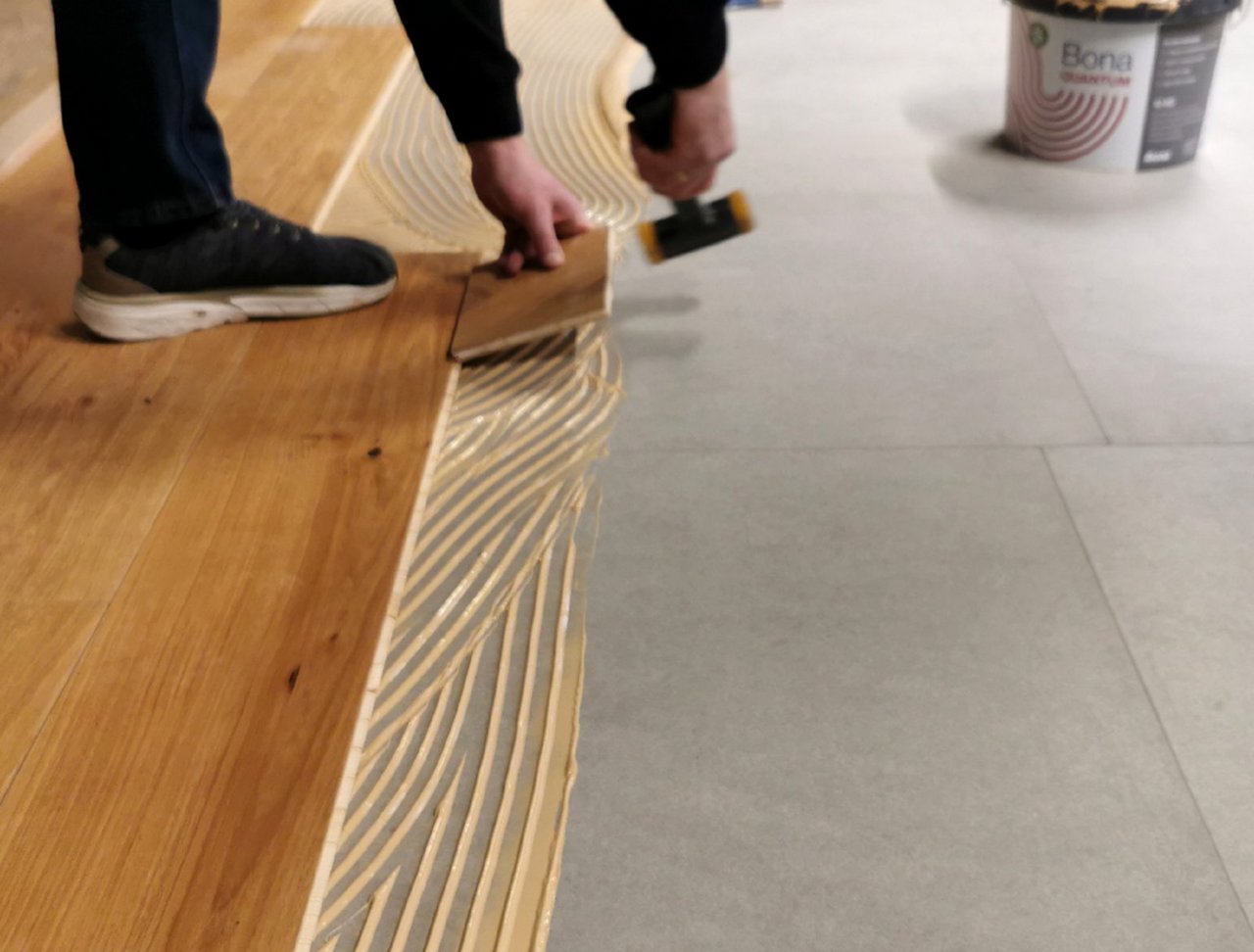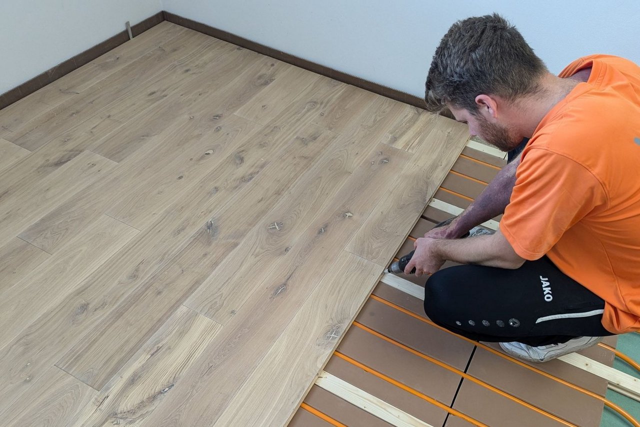Bei dieser Sanierung wurde die WEM Fußbodenheizung mit Eichendielen eingebaut. Sie liefert den Bewohnern nicht nur eine angenehme, sanfte Wärme, sondern sorgt auch für gute Schalldämmung zwischen den Nutzungseinheiten des Hauses.