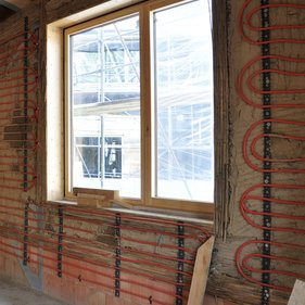 Der Einbau der WEM Wandheizung in den Außenwänden des Holzbaus trägt zu einem ausgewogenen Heizkonzept bei und wird mit Fußbodenheizung kombiniert. Der Neubau des Horts, der sich harmonisch in den Baubestand einfügt und den Schülern des angrenzenden Schulbaus der Freien Waldorfschule einen optisch angenehmen Ausblick bietet, erhielt mehrere Auszeichnungen. Verwendet wurden nachwachsende und ökologische Baustoffe wie Holz, Lehm und Stroh. In dieses Konzept fügt sich die Wandheizung durch die ideale raumklimatische Kombination mit Lehm und ihren energiesparenden Betrieb mit Niedertemperatur hervorragend ein.